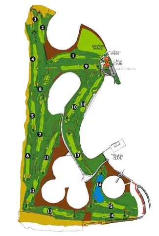 There are only two holes on the course that have water. Our favorite hole is hole number 16 which is a 140 meter par 3; The first shot from the tee has to pass a small lake to reach the green.