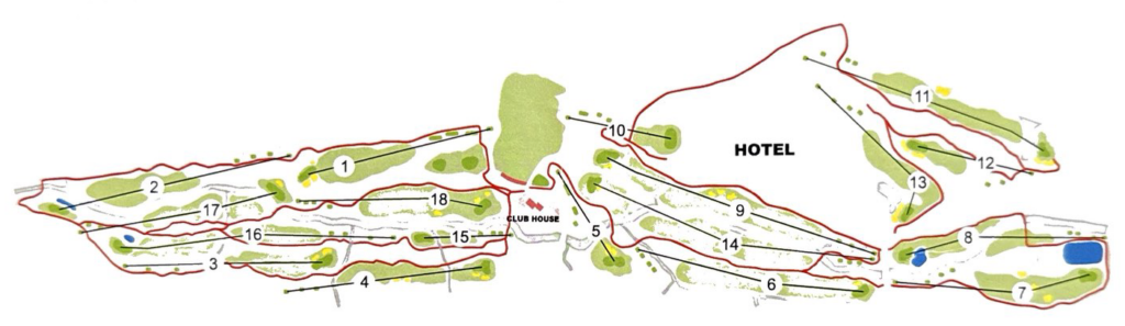 18 hoyos Par 72 (Cuatro Par 5, cuatro Par 3, diez Par 4) Longitud: 5.865 m.