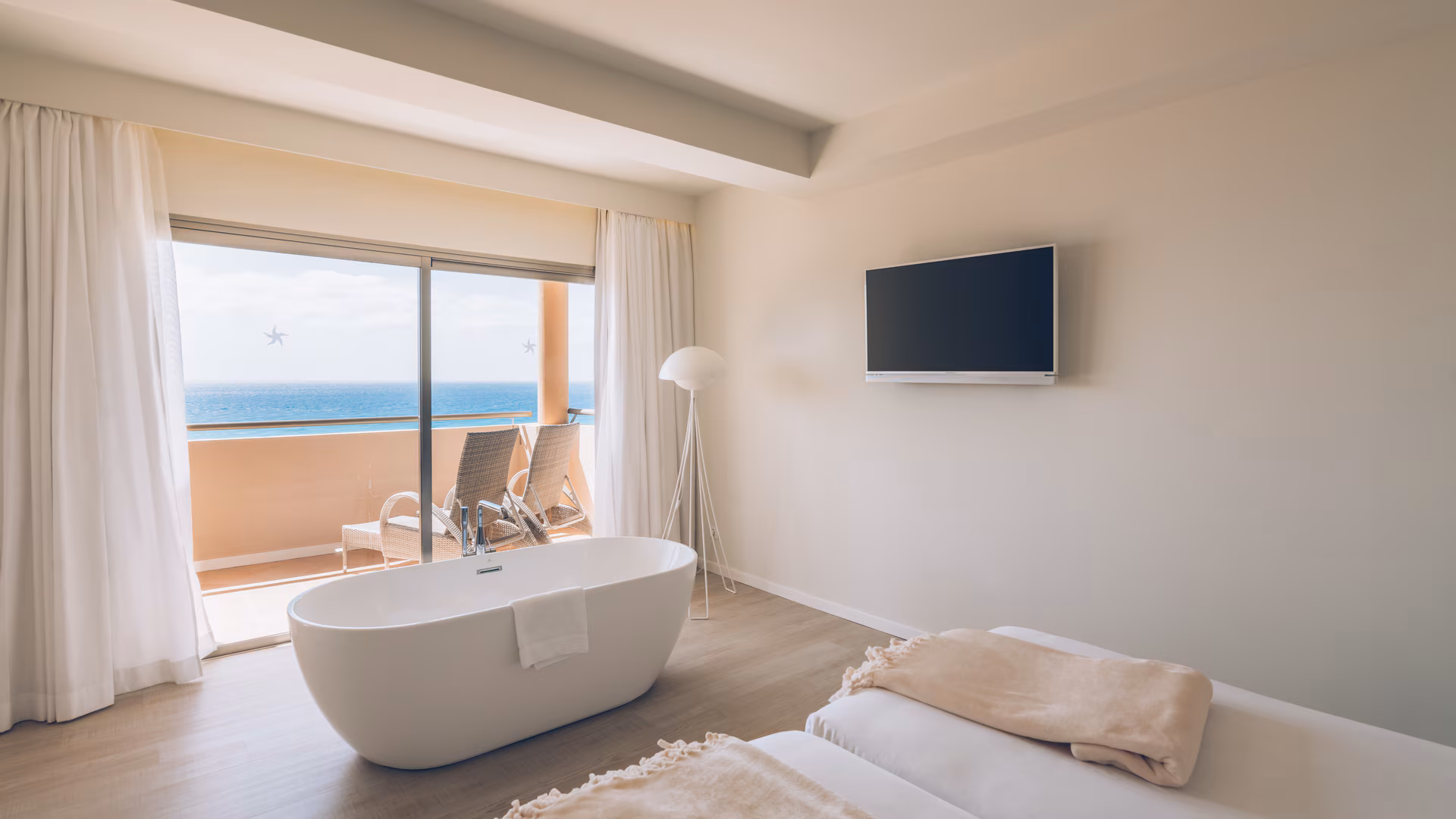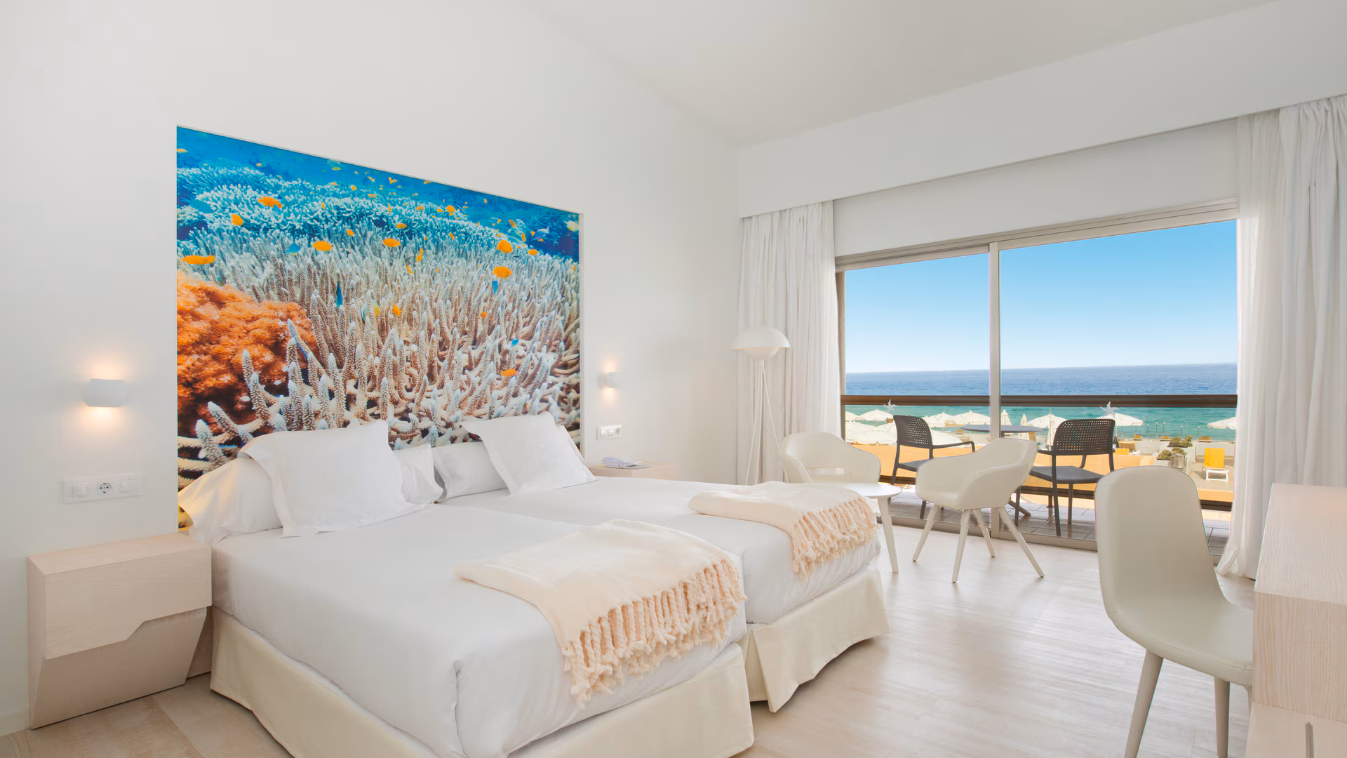El hotel ofrece habitaciones modernas y luminosas, inspiradas en el estilo de vida calmado de la isla. Entre sus categorías destacan las habitaciones dobles con vistas al mar, las Junior Suites y las exclusivas habitaciones Star Prestige, que incluyen acceso a zonas reservadas, piscina privada con área de relax, servicio de bebidas y snacks, y ventajas adicionales para una estancia superior.