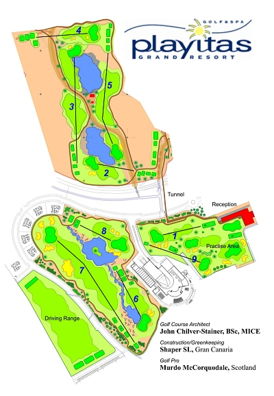 Le nouveau parcours de golf Playitas de 18 trous a été conçu par le célèbre architecte de golf écossais John Stainer Chilver, dont la philosophie était de créer un parcours juste mais exigeant pouvant convenir à tous les niveaux de joueur.